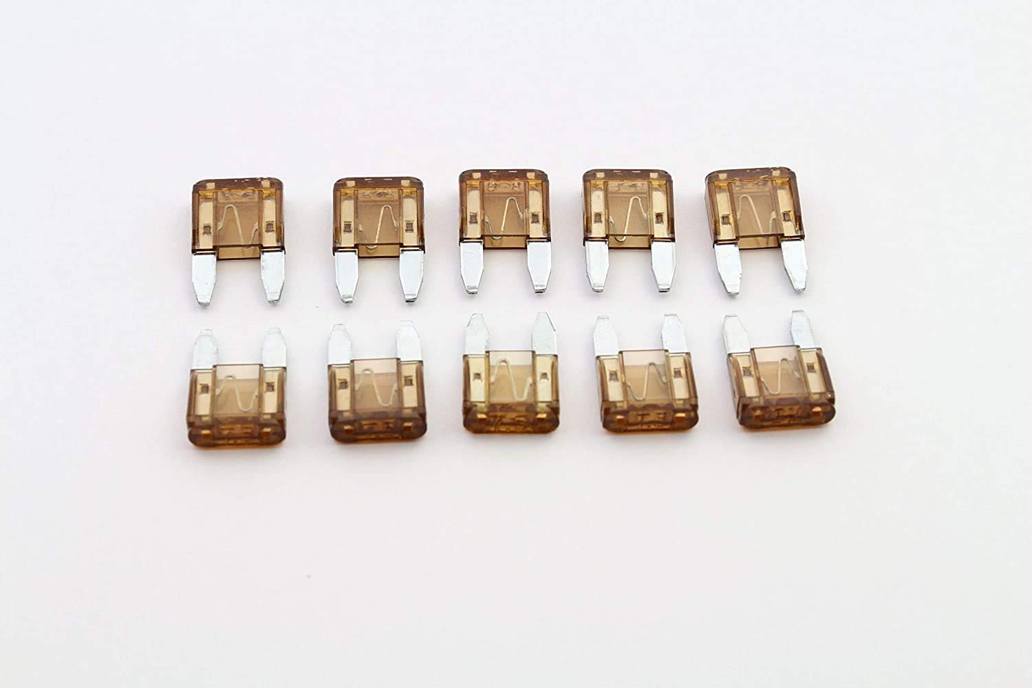 Common mini blade fuses for automobile lighting, audio, UPS, auto headlights, taillights, stoplights, electronic circuit board or other electronic product with low voltage circuit. AMP/ATM blade fuse (also called spade or plug-in fuse) comes with a high-temperature, impact resistant plastic casing and two prongs that fits into the sockets that is mostly used in automobiles. Each fuses is printed with the rated current amperage on the top of the fuses.