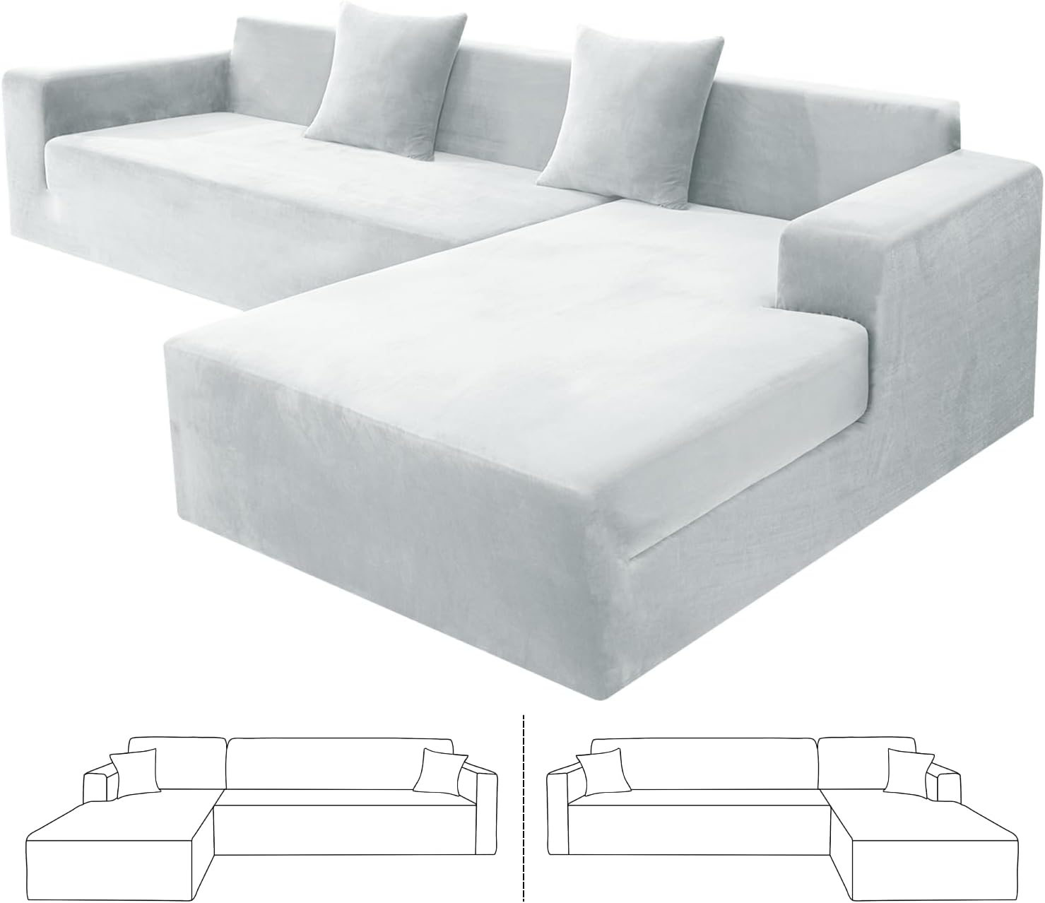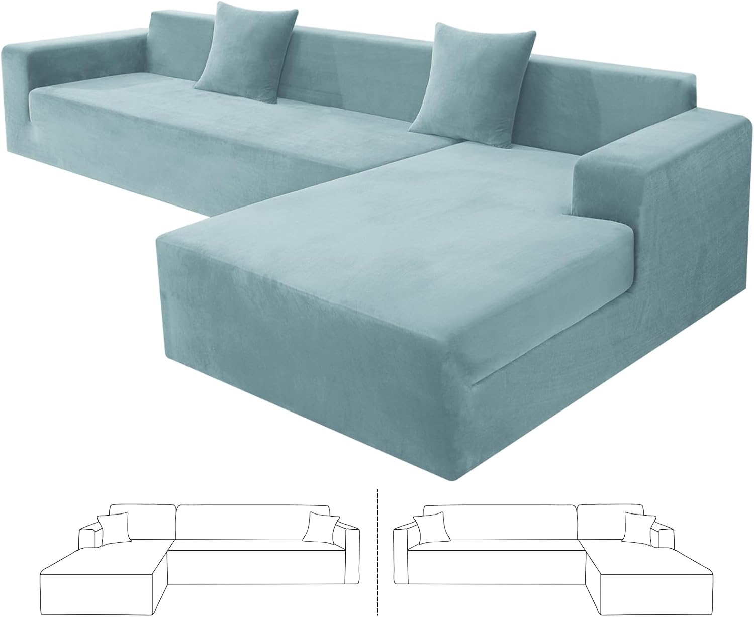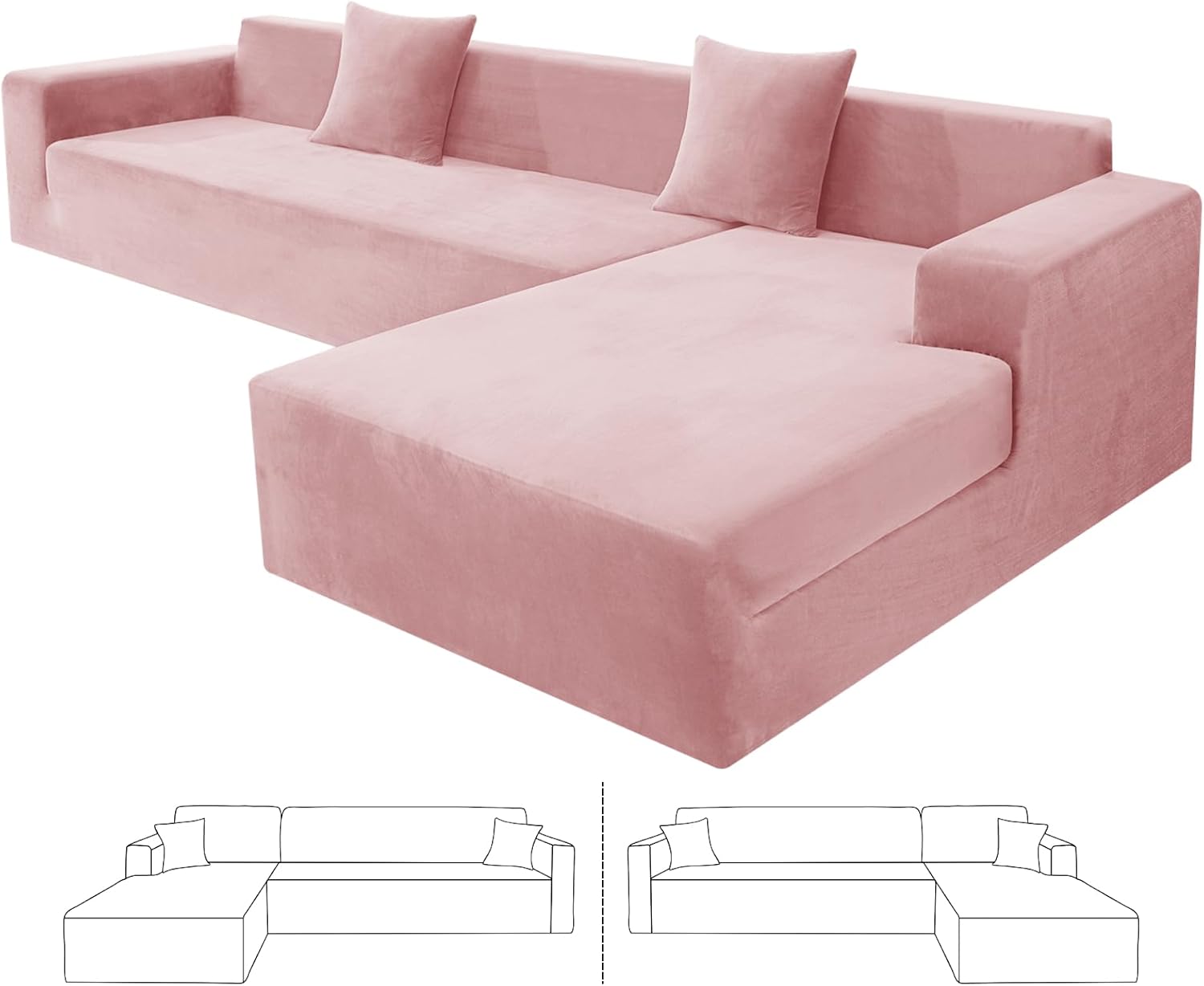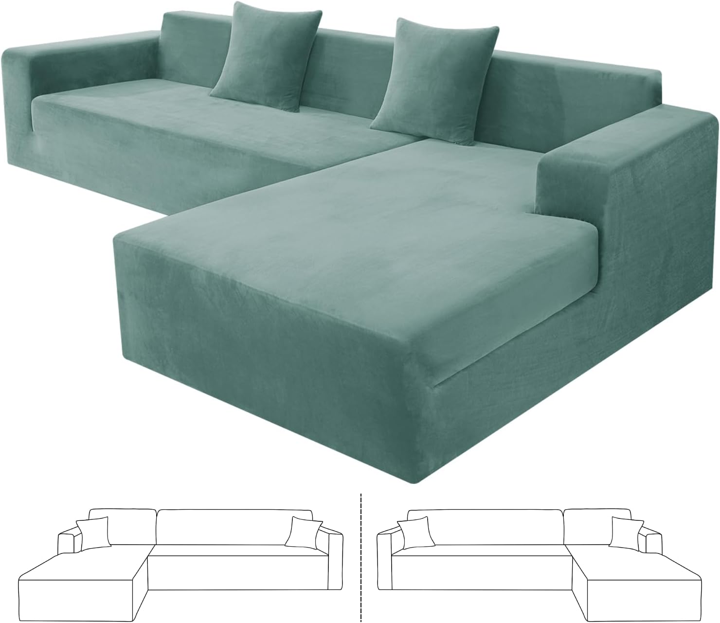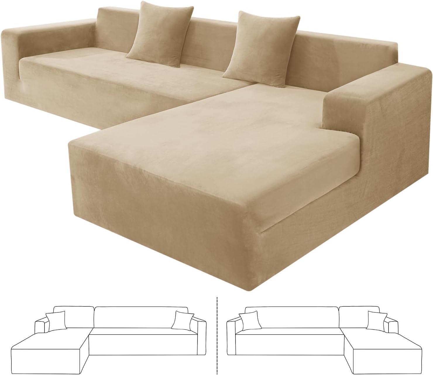 Are you looking for a new sectional sofa or would like to renew your existing L shape sofa? ZNSAYOTX high stretch sectional sofa slipcovers can be your ideal choice, which bring your living room with modern and elegant home style.Why to choose ZNSAYOTX stretchable modular sofa cover?1. Continuous Product ImprovementOur plush velvet furniture slipcovers have been upgraded to be more breathable, moisture and heat resistant. This skin-friendly fabric is not only durable, but also nice, soft, cozy, stain resistant and fade resistant.2.High StretchyOur latest super stretch sectional sofa slipcovers are made by 85% polyester and 15% spandex, high elastic, soft, comfy, wrinkle-resistant. The universal L-shaped couch protector can fit for various sectional sofas, such as leather sofa, velvet sofa, fabric sofa, etc.3.Perfect Fit and Better ProtectZNSAYOTX magic corner couch slipcover are designed by full coverage, which provide all around protection for your sofa and chaise. The thick elastic strap sewn on the bottom of the cover can fit your l shape sofa to the greatest extent, prevent your sectional couch from stains, wear and tear, footprints, pets and kids scratching. A worthwhile for homes with children and pets!4.Size Choose Chaise covers and sofa covers are interchangeable and suitable for both left/right modular sofas.2 Seater + 3 Seater: 1PC for Length between "57-73" + 1PC for Length between "77-90"3 Seater + 3 Seater: 1PC for Length between "77-90" + 1PC for Length between "77-90"5.Risk-Free PurchaseIf you have any questions about our products, our service team will be pleased to assist you with solution within a short time.